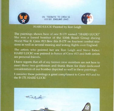 My Fight Crew #13Our Ground CrewThe 100th Bomb GroupThe B-17s We FlewThe 8th Air forceThe Fighter Plane Escort